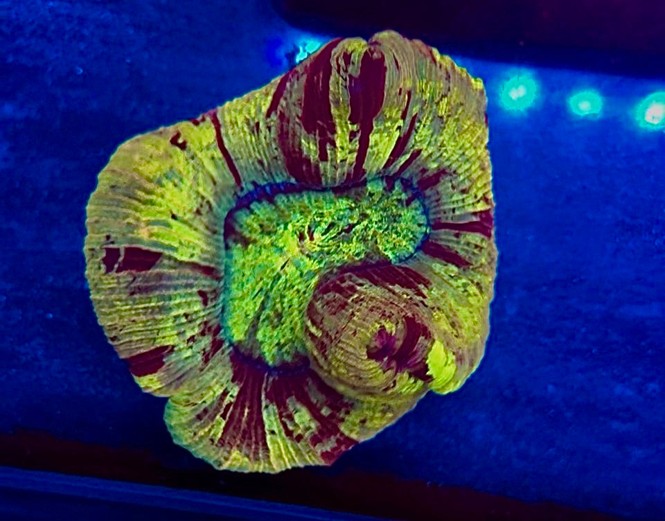 This is a raffle that will take place on Instagram live on Dec 26 2025 Free shipping This is a beautiful yellow and red trachyphyllia Wysiwyg winner takes all!!!! buy as many spots as you want drawing will be 5 pm on Xmas day via instagram live.